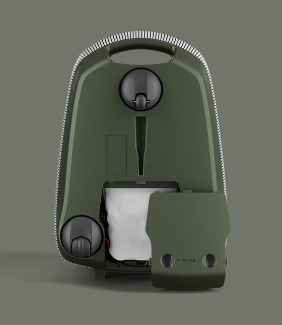 Într-o locuință obișnuită, sacul de filtrare trebuie schimbat rar, economisind timp și efort. Un indicator semnalează momentul în care sacul necesită înlocuire, iar capacul igienic previne eliberarea prafului în timpul scoaterii. Toate modelele sunt echipate standard cu sistemul de filtrare S-Class, testat și consacrat de SEBO, care îndeplinește cerințele speciale ale persoanelor cu astm și alergii.