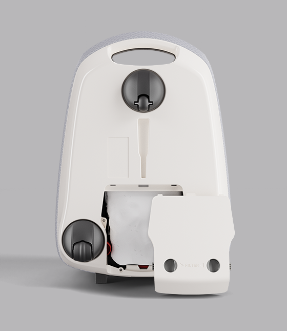Într-o locuință obișnuită, sacul de filtrare trebuie schimbat rar, economisind timp și efort. Un indicator semnalează momentul în care sacul necesită înlocuire, iar capacul igienic previne eliberarea prafului în timpul scoaterii. Toate modelele sunt echipate standard cu sistemul de filtrare S-Class, testat și consacrat de SEBO, care îndeplinește cerințele speciale ale persoanelor cu astm și alergii.