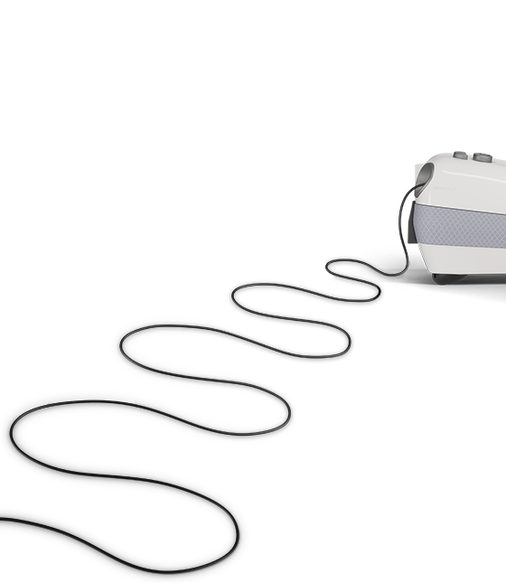 Cu o rază de operare de 10,8 metri, practic nimic nu rămâne inaccesibil cu SEBO AIRBELT E1 PURPLE. Printr-o simplă apăsare de buton, cablul de alimentare se retrage automat.
