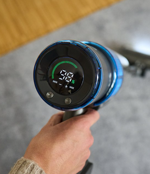 Cu o greutate de doar 2,3 kg, acest aspirator este extrem de ușor și asigură o manevrare fără efort. Display-ul LED afișează nivelul de încărcare al bateriei sub formă de procent, iar puterea poate fi ajustată cu ajutorul butoanelor, fiind indicată vizual printr-un grafic tip bară.