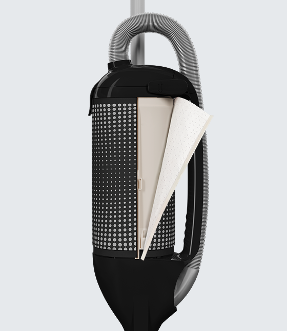 Sac multistrat de 3,5 L care reține eficient praful și menține puterea de aspirare constantă. Are capac igienic pentru golire fără mizerie și se schimbă ușor.