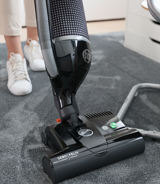 Pe SEBO FELIX poți alege cât de intens să aspiri covorul sau cât de delicat să cureți mobilierul tapițat.