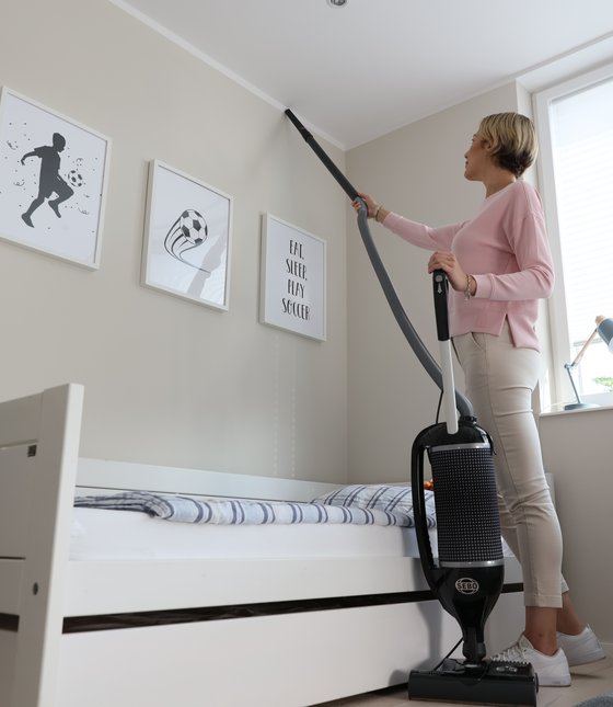 Pe SEBO FELIX poți alege cât de intens să aspiri covorul sau cât de delicat să cureți mobilierul tapițat.